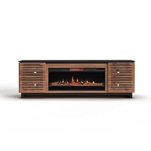 Bridgevine Home Graceland 86 inch Electric Fireplace TV Stand Entertainment Center for 100 Inch TVs. Easy Set Up, Solid Wood, Modern Horizontal Slat Details in Brown Bourbon and Black Finish