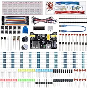 BOJACK 37 Values 480 Pcs Electronics Component Fun Kit with Power Supply Module, Jumper Wire,Precision Potentiometer,830 tie-Points Breadboard Compatible with STM32,Raspberry Pi,Arduino