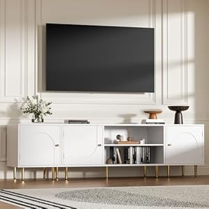 Modern TV Stand for TVs up to 80″, Combined TV Stand for 75+ inch TV, Entertainment Center for 60/65/70in TV, TV Media Stand with Storage Side Cabinet for Living Room, Bedroom, White