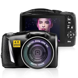 Digital Camera 4K FHD Camera 3″ 64MP Point and Shoot Digital Camera for Pictures with 32GB Card 18X Zoom Compact Small Vintage Camera Black