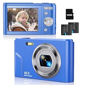 Digital Camera Auto Focus Point and Shoot Camera, FHD 1080P 48MP Kids Camera with 32GB Memory Card,16X Zoom Vlogging Camera Small Digital Cameras for Kids Teenagers Students Blue
