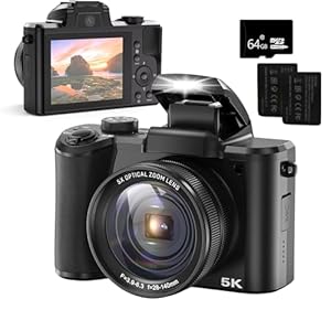 Dododuck 5K Digital Camera: Autofocus, 5X Optical Zoom, 64MP, Vlogging and Video Camera with 6-Axis Stabilization, Dual Cameras Front and Rear, Echo Cancelling Microphone, 2 Batteries (5K)
