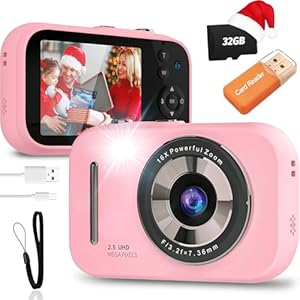 Kids Camera Digital Camera, 4K Autofocus Vlogging Camera for Kids with 16x Zoom Anti Shake, Flash and 48MP Point, Kid Camera with 32GB SD Card, Lanyard, Portable Toy Kids (Pink)