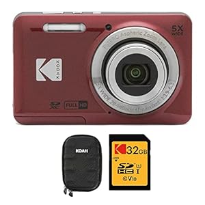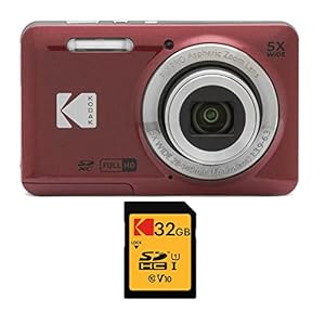 Kodak PIXPRO Friendly Zoom FZ55 (Red) with 32GB Memory Card Bundle