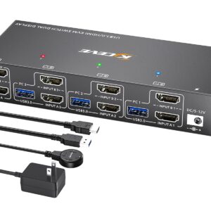 KVM Switch 2 Monitors 3 Computers 4K@60Hz,HDMI USB3.0 KVM Switches with 4 USB 3.0 Port,Wired Remote,Power Adapter and USB3.0 Cables Included(4K 3 PC 2 Monitor KVM)