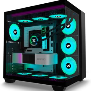 PC CASE ATX 9 PWM ARGB Fans Pre-Installed, Mid-Tower Gaming PC Case, Panoramic Tempered Glass Computer Case with Type-C,360mm Radiator Support (H9)