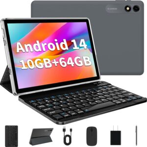 Android 14 Tablet 10 Inch, 2 in 1 Tablets with Keyboard/ Mouse/ Case/ Stylus, 8GB RAM+64GB ROM/1TB Expand Tablet, 1.8Ghz Quad-core Processor, 1280*800 HD Touch Screen, 8MP Camera, 5G WIFI 6 Tablet