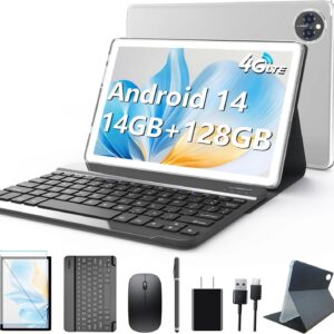Android 14 Tablet 10 Inch, 4G Cellular Tablet, Octa-Core, 128GB Storage + 14(8+6)GB RAM/ 1TB Expandable, 5G WiFi, 8000mAh Battery, Bluetooth 5.0, 13MP+8MP Camera, Tablet with Keyboard/Case Kit, Gray