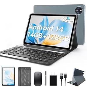 Android 14 Tablet 10 inch 2025 Latest Tablet with Keyboard,14GB RAM+128GB ROM+1TBExpand,Octa-Core,4G Cellular tablets with 2 Sim Slot,Incell screen,5G WiFi/BT5.0/GPS,13MP+8MP Camera7000mAh Battery