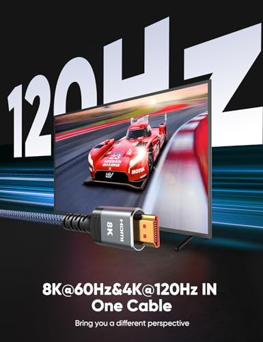 Design For Game Enthusiasts: This HDMI cord can achieve a super smooth picture of 4K@120Hz and 8K@60Hz. Its latest game mode supports variable refresh rate, maximizes the value of the graphics card and CPU, elevate gaming experience to a whole new level