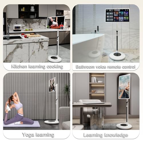 【Built-in Ultra-Long Battery Life and Mobile Design】Portable touch screen tv is accompanied by a pole and a mobile base, which is perfectly integrated with the display. The mobile base incorporates a built-in 192.4WH power-saving battery (15000mAh), enabling up to 6 hours of usage and allowing for movement anytime and anywhere. The five wheels on the base can smoothly roll the portable TV throughout the room. You can utilize it in diverse application scenarios, such as the living room, kitchen, bedroom, bathroom, courtyard, indoor and outdoor, yoga room. You can employ it for learning cooking, practicing yoga, casual binge-watching, etc.