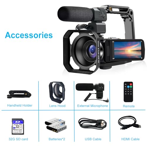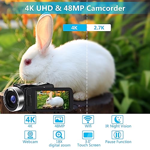 【4K UHD Camcorder & 48MP】This video camera comes with advanced 4K resolution and 48 megapixel image quality, which is enough for your daily shooting. The vlogging camera for youtube with a 13 megapixel sensor, it delivers high quality videos and images even in low-light conditions.