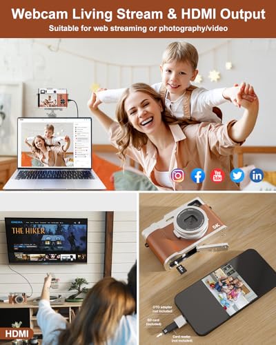 【Upgrade 5K 30FPS Digital Camera】—- 2024 Newest retro style 5k camera for photography delivers a high bit rate of 30FPS, it has all the modes you need for photography or videography, support 48MP image resolution and record 5k videos with pause function, capturing every detail with remarkable clarity and vibrant colors, and the 16X zoom capabilities provide flexibility, allowing you to capture distant scenes without compromising on image quality, Upgraded 5K digital camera is a compact camera that ticks all the boxes for photographers and vloggers alike.