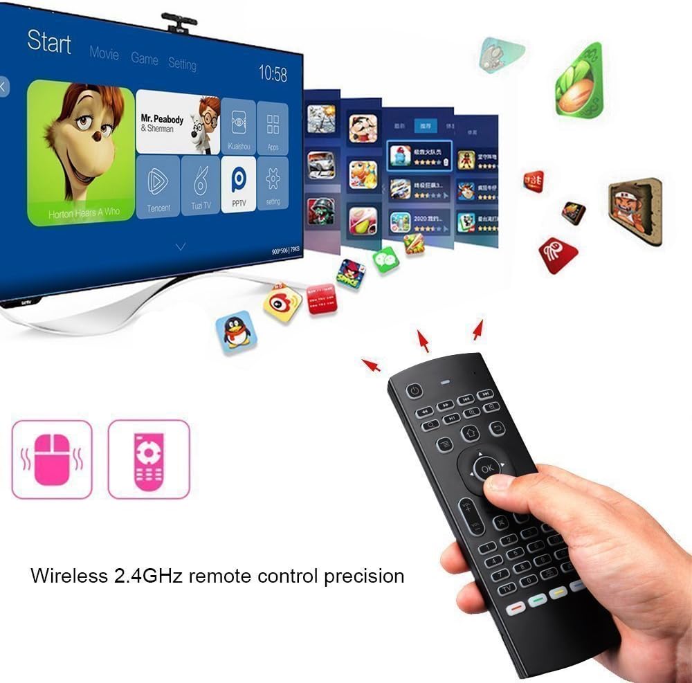 【PLUG AND PLAY】MX3 air mouse remote with mini wireless keyboard is connected by a stable powerful 2.4GHz RF technology, just plug USB receiver,the transmission distance can up to 10 meters/ 394 inch(may be less than 10m depending on the environment).