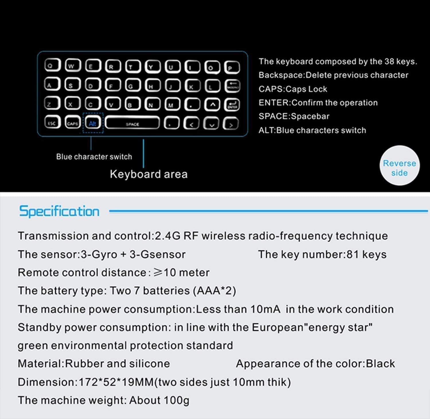 【2-in-1 MULTIFUNCTIONAL REMOTE】Mini wireless keyboard and 6 Axis gyration motion system:only have 38 keys button,but can enter all characters in one. Press “Alt” to switch to punctuation or letters characters. 3-Gyro + 3-G Sensor allows mouse to be controlled accurately for motion sensing game.