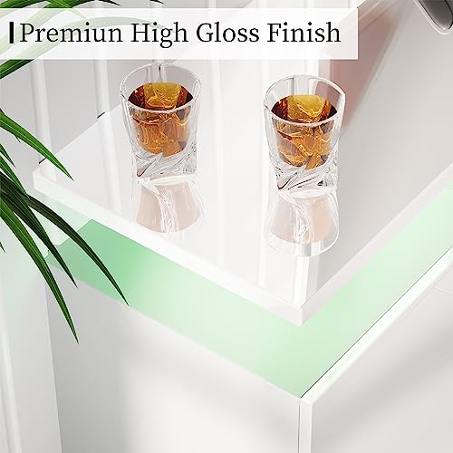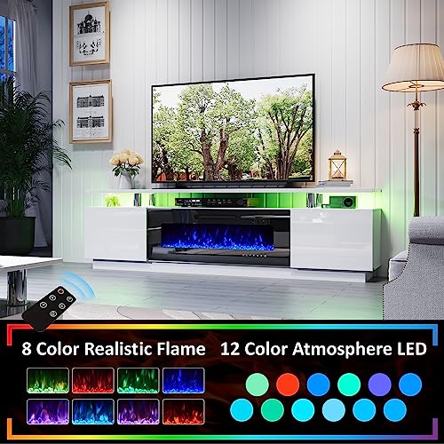 80″ Wide high-gloss shelves and doors plus matte-white body show luxury and modernity. LED kit includes 12 changeable colors and 96 kinds of color combinations to custom a personalized dazzle lighting atmosphere and unique experience