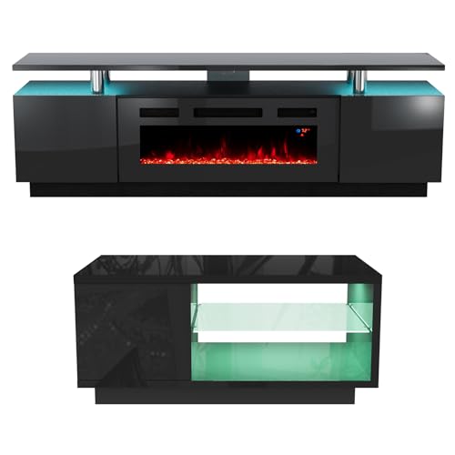 【Modern & Exclusive Style】Three pieces modern design living room table sets advocate the beauty of matching, custom livingroom minimalist aesthetics & atmosphere, including 1xFireplace TV stand, 1xCoffee Table