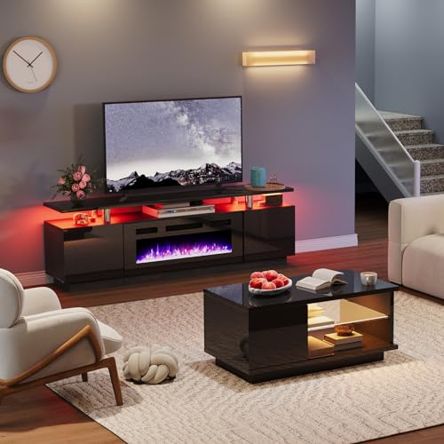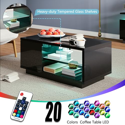 【Coffee Table】High-gloss storage cabinets with front & back doors to maximize the use of spare space. Opening glass shelves with 20 color LED lights, meet your daily storage needs and add luxury & modernity