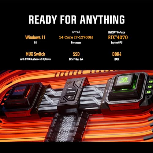 Feature: Windows11 Laptop RTX 4070 TGP 140W MUX Switch, RGB Backlit Keyboard, Wi-Fi 6, Thunderbolt 4 USB C, Webcam, Dual Speakers, Upgraded Thermals Cooling Technology.