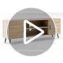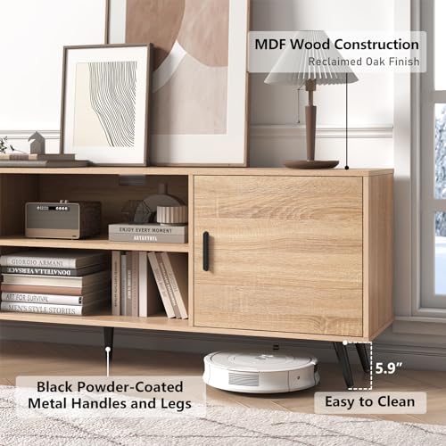 Modern Mid Century TV Stand: Featuring a classic two-door design with a mid century look and pine legs, the simple lines of the long TV stand design can easily be incorporated into a variety of decorative aesthetics to enhance the look of any room.