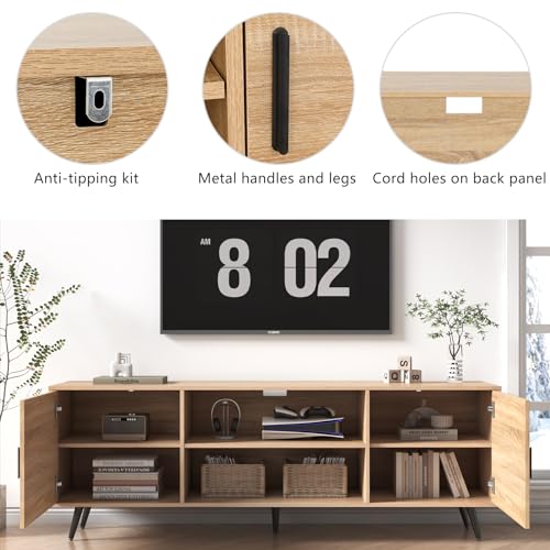 Easy to Assemble: The wide TV stand measures 70 x 15.7 x 24.5 inches, which comes with detailed instructions and all hardware needed for installation so that you can easily assemble it by yourself.