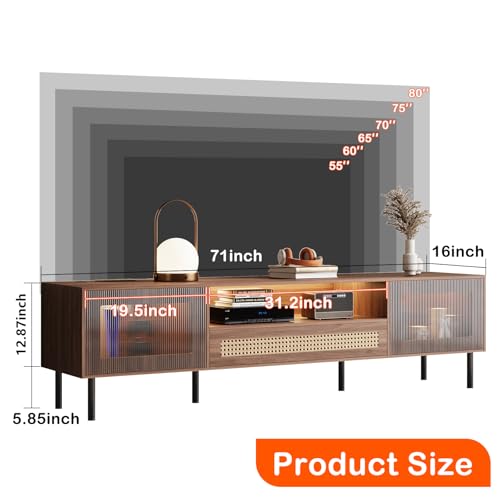【71INCH TV CONSOLE WITH CABINET】: 2 storage cabinet(size: 19.5×15.6×12.87inch) can be used as storage cabinets in the living room to store your favorite items. At the same time, the cabinet with transparent design, which plays a good display role. The acrylic cabinet door can isolate dust and make maintenance easier. The rebound design gives you a safer storage space.