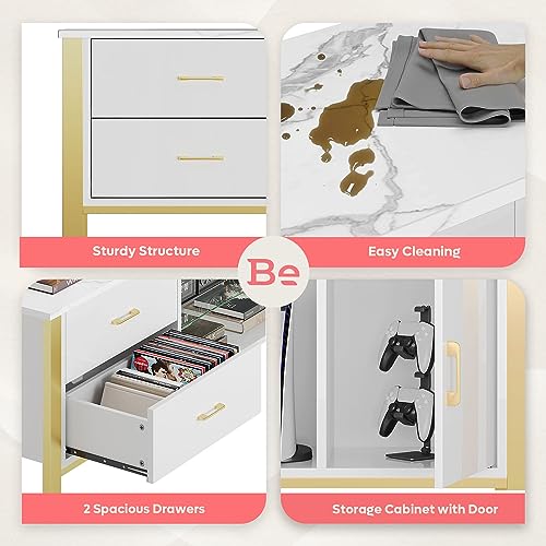【Considerate Design】Not only perfect display for XBOX, PS5 or Switch, and other entertainment equipment even a long soundbar, also 2 large enclosed drawers and 1 cabinet keep your living room clean away from any clutter. Moreover, a pre-cut circular back hole makes sure the wires will be arranged tidy in an organized way for cable management