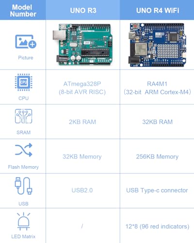 [LED Matrix Display Capability]: The UNO R4 WiFi comes with a built-in 12×8 LED matrix, totaling 96 dots, which is perfect for displaying animations or plotting sensor data, adding a visual element to creative projects. This integrated display solution reduces the need for additional hardware, making project development more convenient.