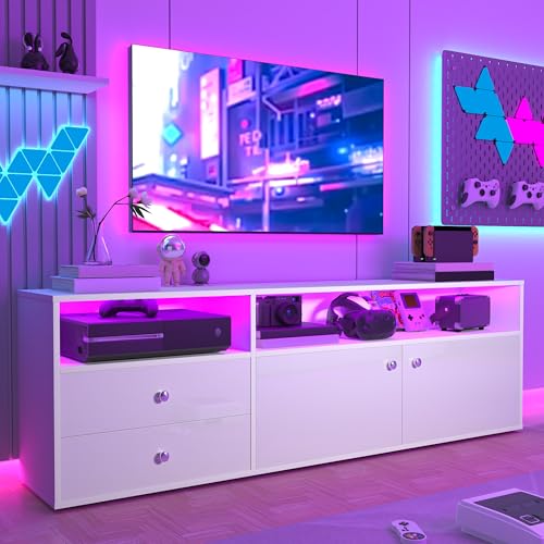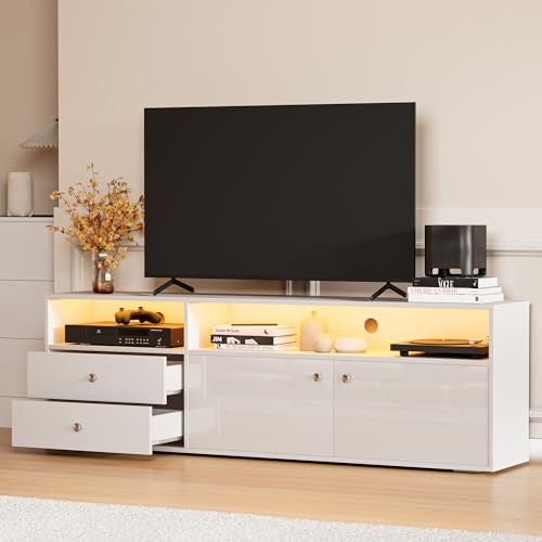 Sleek High Gloss Finish: Elevate your room with the under tv cabinet’s sleek high gloss surface, infusing a modern and sophisticated ambiance. Beyond aesthetics, the high gloss finish simplifies cleaning and easy to care