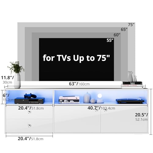 Storage Tv Unit : With dimensions of 63″W x 11.8″D x 20.5″H, the tv stand with storage can house TVs up to 75″. Featuring 2 drawers, 2 open shelves, and a sizable storage cabinet with double doors, it offers ample space to store and organize items