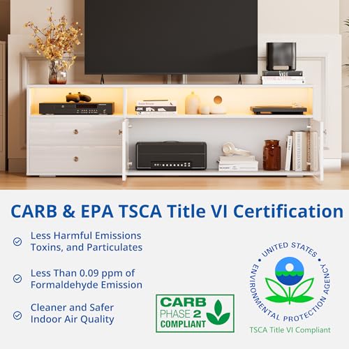 Environmentally Certified: Crafted from high-quality CARB/EPA certified material, the tv stand for living room 75 inch ensures durability and safety with low formaldehyde emissions, prioritizing the safety of your family and pets