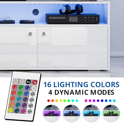 Dynamic LED Lighting Control: The tv entertainment center with adjustable LED lights provides a range of options, featuring 4 modes and 16 lighting colors that can be effortlessly managed and customized using the remote control