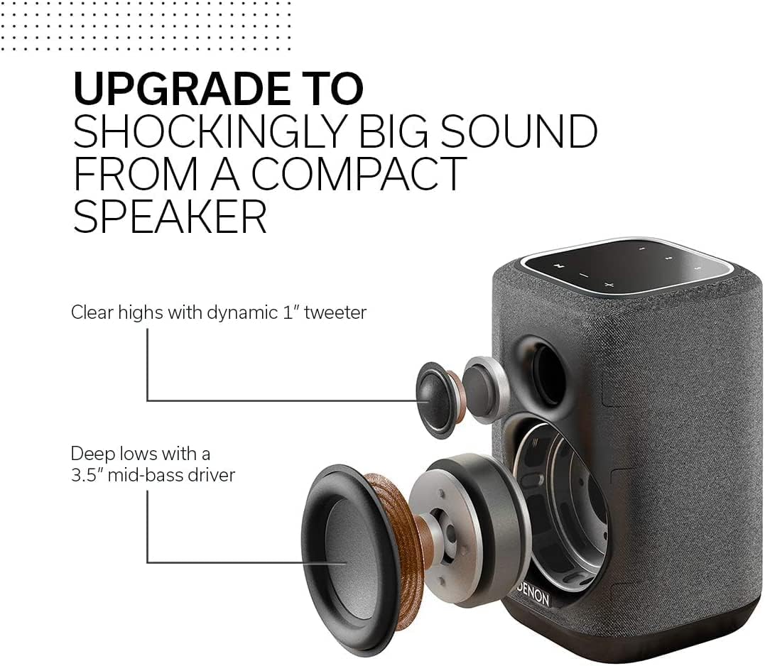 HI-RES AUDIO, WITHOUT THE HI-FI SYSTEM – Featuring a dynamic 1″ tweeter and 3.5″ mid-bass driver, the New Denon Home 150 is designed to reproduce accurate Denon sound with clear highs and deep lows – experience excellence in every beat
