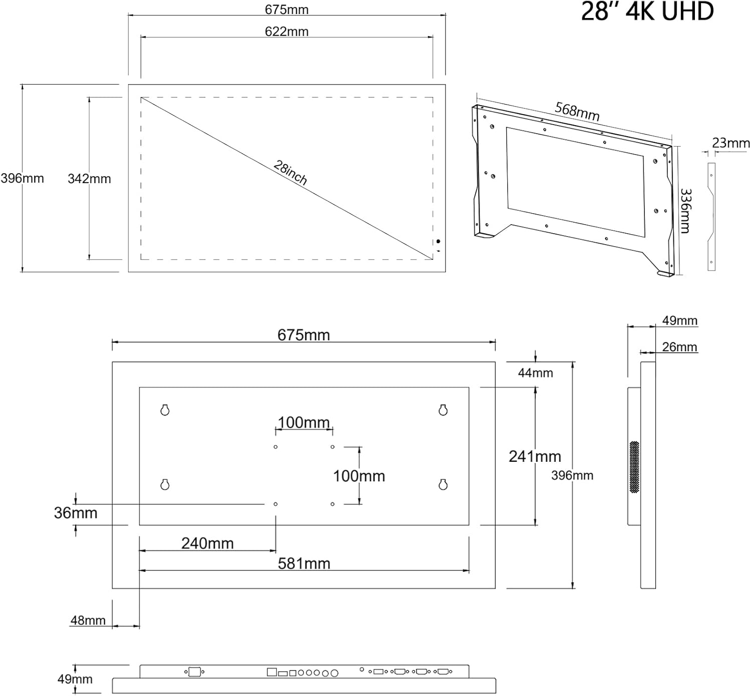 Connectivity Technology Ethernet RJ45, Optical Audio Out, Earphone Audio Out, AV, USB2.0 x 2, HDMI2.0 x 3 (ARC x 1), TV Tuner, Bluetooth5.0, Dual Band WiFi (2.4G & 5G) Operating System LG webOS (4K UHD Version) TV APP Store Yes (Support for downloading popular Apps on the TV) Operating 63W Streaming Netflix, Prime Video, Disney+, Hulu, Apple TV+, YouTube etc. Special Features Waterproof, Mirror Panel, AI Voice Control, Magic Remote, Pointer, ThinQ and Built-in Alexa TV Power Input AC 100-240V Dust-proof / Waterproof Rating IP65 Power Consumption Standby: <0.5W Built-in Speakers Built-in 8Ω /10W x 2 Working Temperature 0℃ – 40℃ (32°F – 104°F) Remote Control Supplied Magic Remote (With Waterproof Cover Supplied); IR, BT, Voice Control, Hotkeys, Universal Control, Pointer (Zyro Sensor) Voice Recognition: 15 Languages / 143 Countries TV Dimensions 28“(26.6”W x 15.6”H x 2”D)/32“(29.2”W x 17.2”H x 2”D)/43“ (39.1”W x 22.8”H x 2.4”D), detail please refer to the main pictures Recess in Wall Dimensions 28“(23”W x 13.2”H x 1.1” D)/32“ (23.1” W x 13.2” H x 1.01” D)/43“ (18.7”W x 20.5”H x 1.7”D), detail please refer to the main pictures Controller Type ARM CA55 1.1GHz Quad Core Packing Includes 28“/32“/43“webOS mirror TV, Magic Remote, Remote Waterproof Silica Gel Cover, Remote Holder, TV Bracket, Screw Set, Manuals (English, Spanish), Power Cord (With Leakage Breaker)