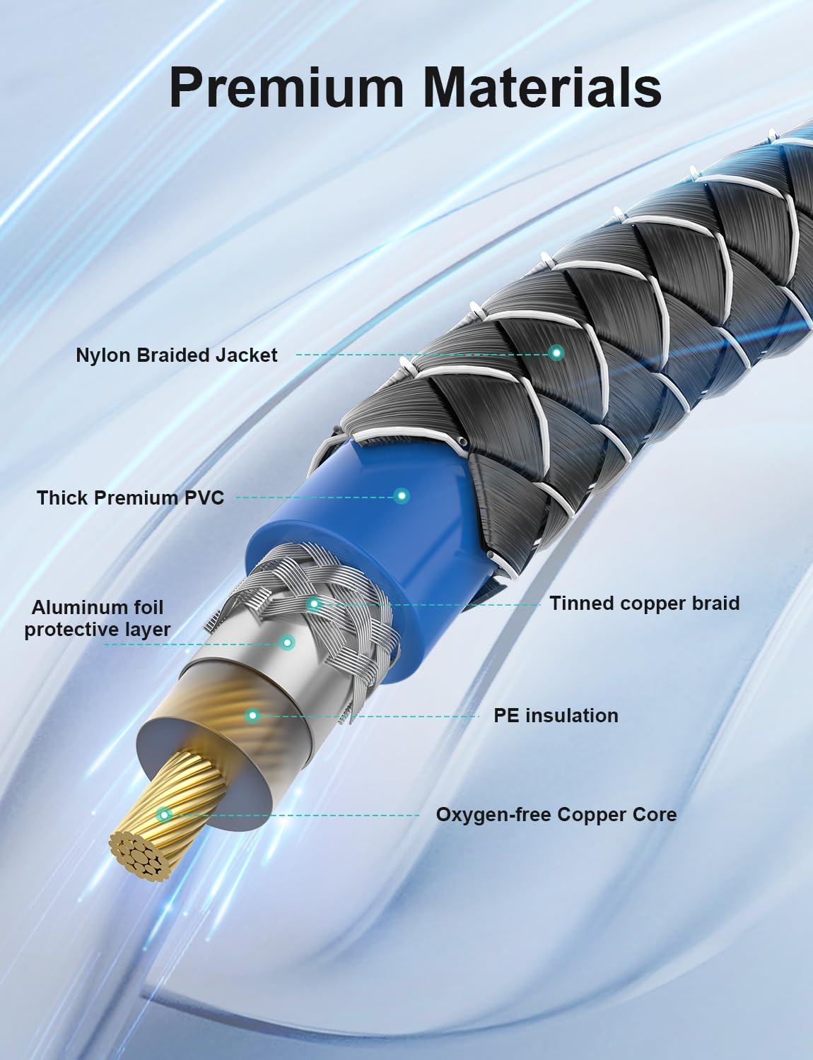 Incredible Durability:a tested 15000+ bend lifespan, double-braided nylon audio cable adding to the durability, flexibility and tangle free, ideal for home-entertainment and high-fidelity Hi-Fi systems.