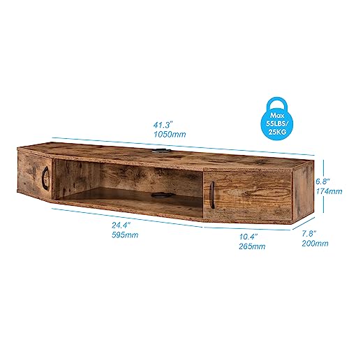 【MUTIL STORAGE & HIDDEN CABINET】: The storage space with wall-mounted TV shelves is perfect for holding TV components, game accessories, books and decorations. The hidden doors of the floating entertainment center on both sides can cleverly protect privacy, while the center door can place game consoles, stereo speakers, DVD players and CDs to make reasonable use of the space.