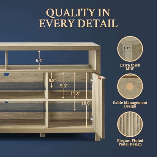 Heavy-Duty TV Cabinet for Superior Stability: Built with ultra-thick Exterior Grade MDF Board, net weight 95.5 pounds, gross weight 106.3 pounds, ensuring durability and luxurious enjoyment.