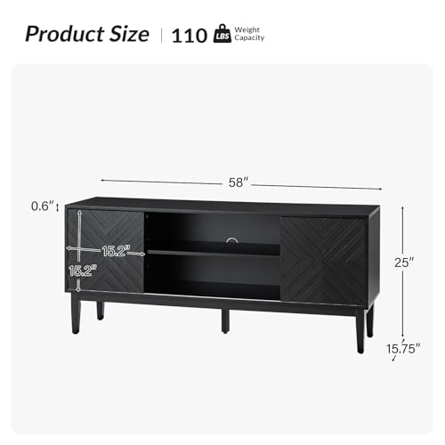 Adjustable Shelves- The stand offers adjustable shelves. The entertainment center features adjustable shelves for flexible storage, accommodating different sizes of media equipment, decor, and personal items.