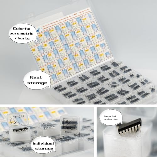 Comprehensive IC CHIP Collection: Our all-inclusive Electronic Components Kit, tailor-made for engineers, hobbyists, and beginners, covers 17 types of CMOS Logic Gates (74HCXX), 5 types of CD40XX, 5 types of LMXXX, 555 Timer, ULN2003/2803, and more! All conveniently housed in DIP Packages for effortless breadboard and PCB compatibility