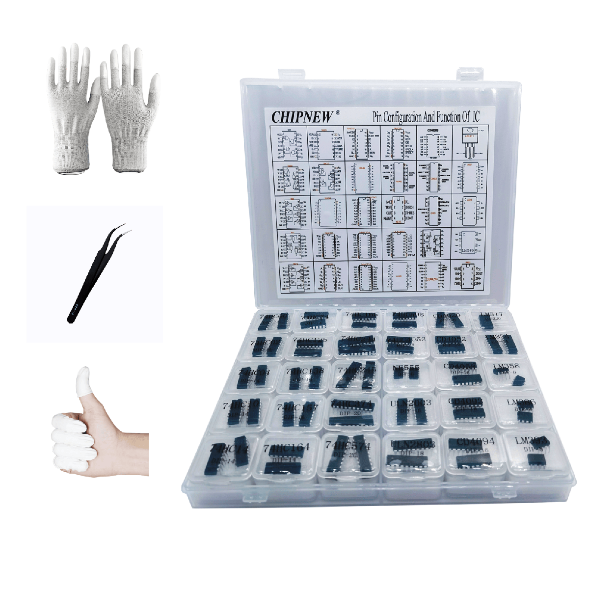 Product List:74HC00 x2, 74HC02 x2, 74HC04 x2 ,74HC10 x2,74HC14 x2, 74HC74 x2, 74HC125 x2, 74HC138 x2, 74HC157 x2, 74HC164 x2, 74HC165 x2, 74Hc244 x2, 74HC245 x2, 74HC374 x2, 74HC574 x2, 74HC595 x2, 74HC4052 x2; CD4020 x2, CD4052 x2, CD4053 x2, CD4093 x2, CD4094 x2; LM317 x2, LM324 x2, LM358 x2,LM386 x2, LM393 x2; NE555 x2, ULN2003 x2, ULN2803 x2