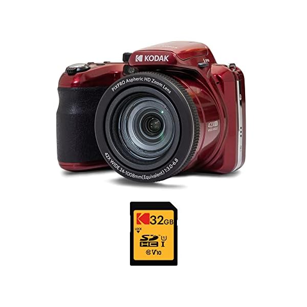 Bundle Includes: Kodak PIXPRO AZ425 Astro Zoom 20MP Digital Camera with 42x Optical Zoom, Full HD Video, HDR (Red), and Kodak 32GB Class 10 UHS-I U1 SDHC Memory Card