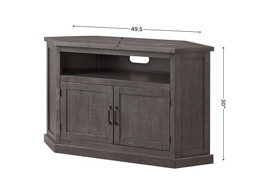 Introducing our Rustic Corner TV Stand in grey, adding style, and functionality to your home maximizing spaces. Constructed from solid New Zealand pine wood comes with rough sawn details that creates the distressed rustic look. Its versatile design can blend into any room setting. This stand features two spacious cabinets, and a top shelf for storage, and organization of entertainment needs. Martin Svensson Home is an American company started by the man himself, Martin Svensson, a Swedish immigrant over 100 years ago. We continue his legacy today by delivering high quality, affordable solid wood luxury furniture. Your satisfaction is our guarantee. When you pick up a Martin Svensson piece, you can rest assure that this furniture will last a lifetime!