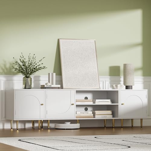 📺️【Durable & Stable Construction】- Equipped with magnetic devices for easy opening and closing, this sideboard cabinet features durable hinges designed for long-term use. Crafted from CARB/EPA certified sturdy wood, it offers reliable stability and durability to withstand everyday use.