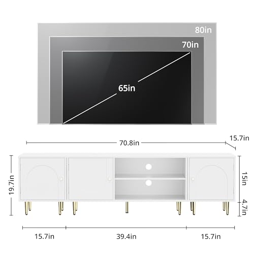 📺️【TV Stand for TVs up to 80″】- This TV Stand with doors can accommodate most flat screen/curved TVs. The assembled dimension of 70.8″L x 15.7″D x 19.7″H, it’s recommended for TVs up to 80″. Suitable for all decor styles, adding aesthetic to your living room and bedroom.