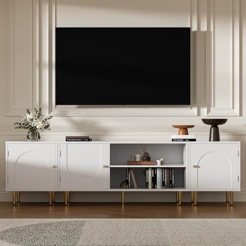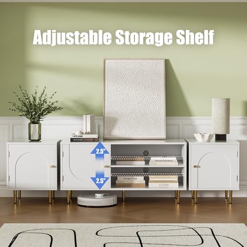 📺️【Morden Arch-Shape Design】- The arch shaped design of the panels on this modern entertainment center exudes sophisticated and effortless style while highlighting texture and allure. Paired with golden cabinet handles and feet, it effortlessly illustrates the essence of casual luxury and enhances the style and sophistication of the space.