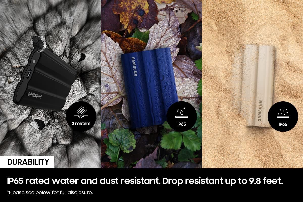 GO THE DISTANCE: Withstand whatever adventure with the wildly reliable T7 Shield; It’s designed for the elements with water1, dust2 and drop3 resistance—all, of course, at lightning speeds