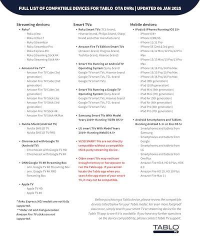 WHOLE-HOME ACCESS: 1 DVR pairs with any TV antenna to let you watch TV on multiple compatible devices at once, including smartphones, tablets, as well as smart TVs & streaming players from Roku, Amazon Fire TV, Android TV, Chromecast w/ Google TV, Apple TV, Samsung TV, LG TV. For a full list of all compatible devices, view the product carousel image or download the list from Product guides and documents section.