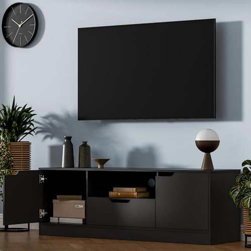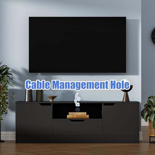 📺️【Ample Storage Space】- With 2 storage cabinets with doors, 1 drawer and 1 open space, this TV stand provides spacious and flexible storage space to keep your electronic devices, accessories and other items organized.