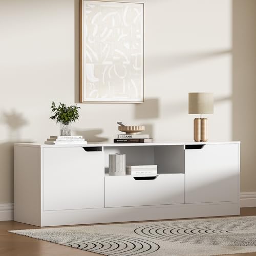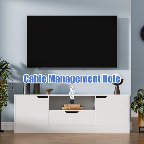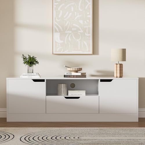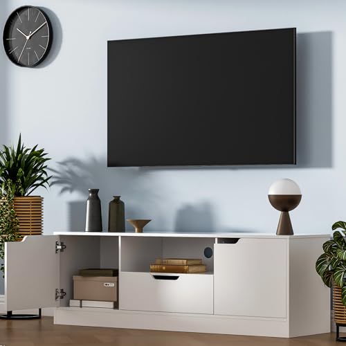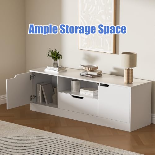 📺️【Ample Storage Space】- With 2 storage cabinets with doors, 1 drawer and 1 open space, this TV stand provides spacious and flexible storage space to keep your electronic devices, accessories and other items organized.