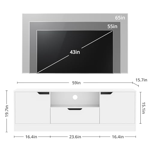 📺️【Modern TV Stand】- Housoul modern TV media console cabinet has a stylish and simple design. With assembled dimension of 59″L x 15.7″D x 19.7″H, it is suitable for TVs up to 65 inches. This versatile piece can be placed in your bedroom, living room, or office, effortlessly enhancing the beauty and functionality of any space.